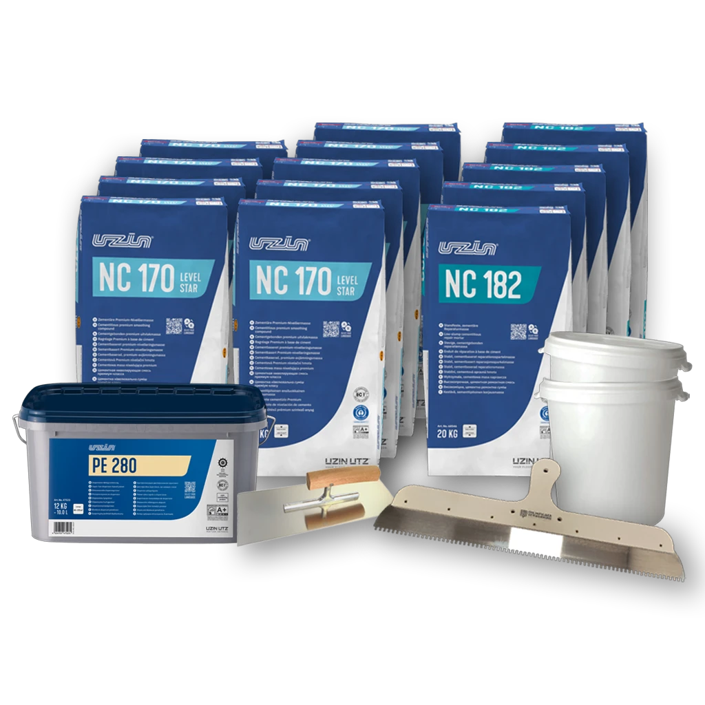 • Uzin NC 182 Cementgebonden 20kg reparatiemortel: Voor het repareren van scheuren en oneffenheden in de vloer, zodat je een solide basis hebt om mee te werken.